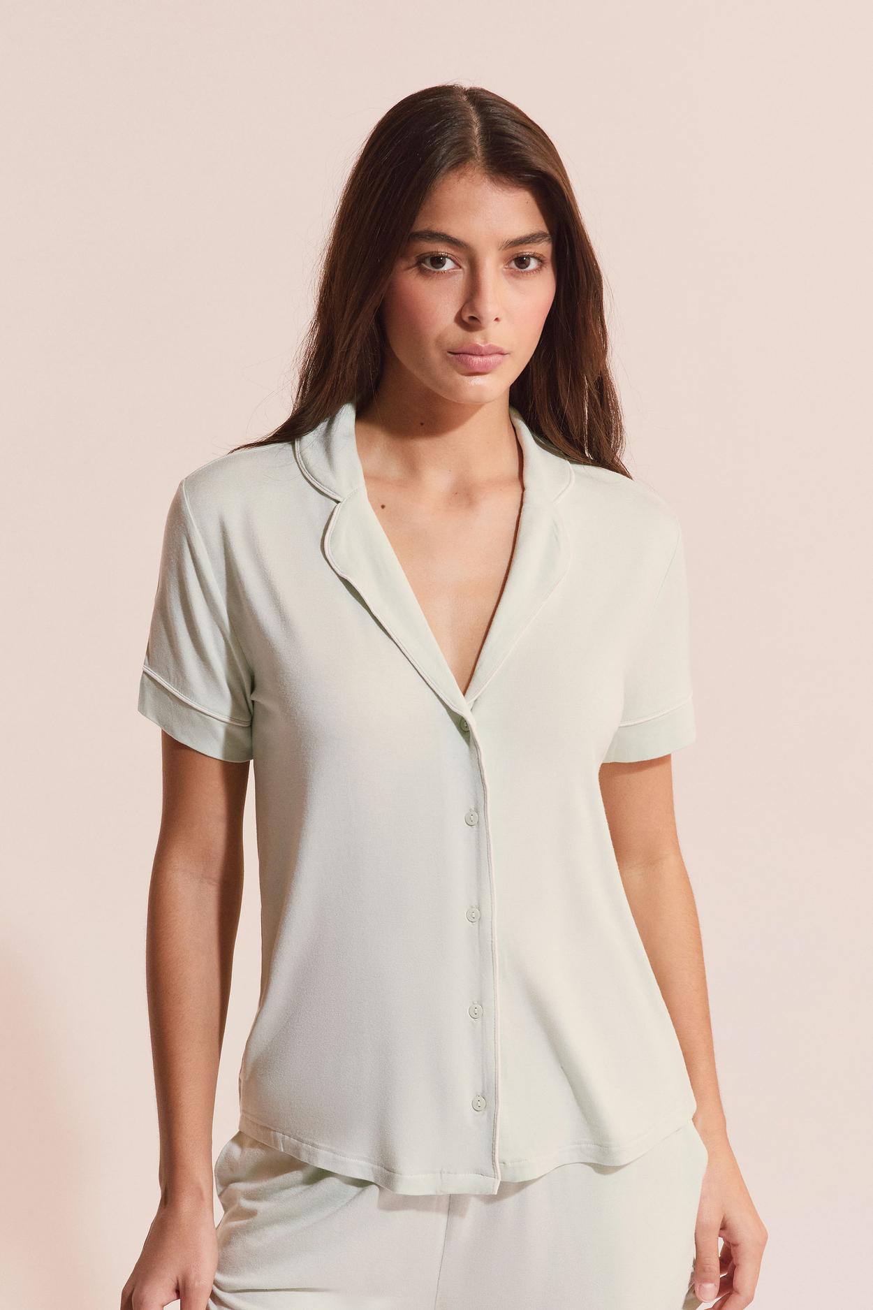 100% bawełna; góra: melanżowy wygląd; Y-dekolt z plisą z guzikami; kieszeń na piersi z guzikiem; spodnie: jednokolorowe; elastyczny pas ze sznurkiem ściągającym; kieszenie boczne; ściągacze na końcach nogawek; normalna długość nogawkiParametry: