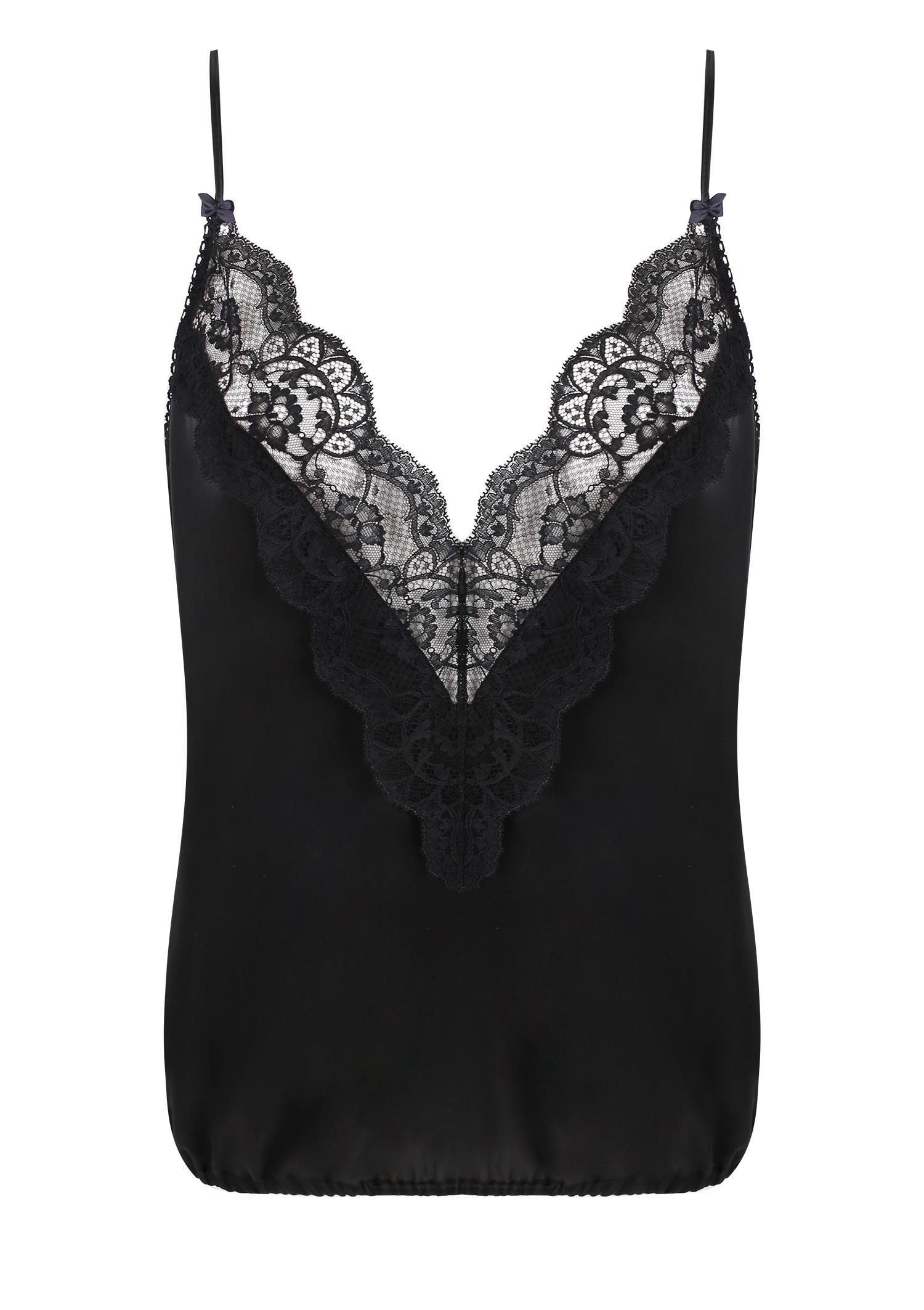 Komplet nocny satynowy z amarantową koronką Jennifer 01 Poupee Marilyn, black/amaranth